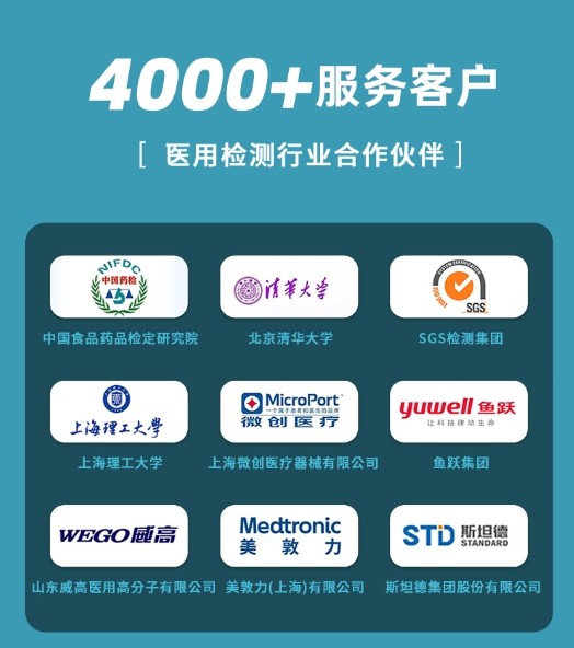 深耕行業(yè)16載,我們憑借著檢測(cè)領(lǐng)域的先進(jìn)成熟技術(shù)和完善的4S級(jí)服務(wù)體系,已經(jīng)與全國(guó)多家知名醫(yī)療器械相關(guān)單位達(dá)成合作。您的需求就是我們前進(jìn)的動(dòng)力,我們始終堅(jiān)持以客戶(hù)為中心,為您提供更優(yōu)質(zhì)的產(chǎn)品和更貼心的服務(wù)。截至目前我們已累計(jì)服務(wù)行業(yè)單位超過(guò) 4000 家,輻射全國(guó)30余個(gè)省市,遠(yuǎn)銷(xiāo)歐洲、東南亞地區(qū),獲得了市場(chǎng)的高度認(rèn)可。